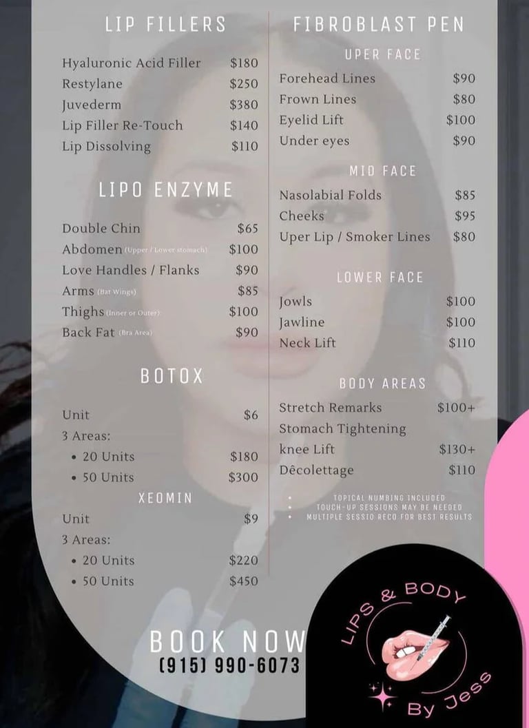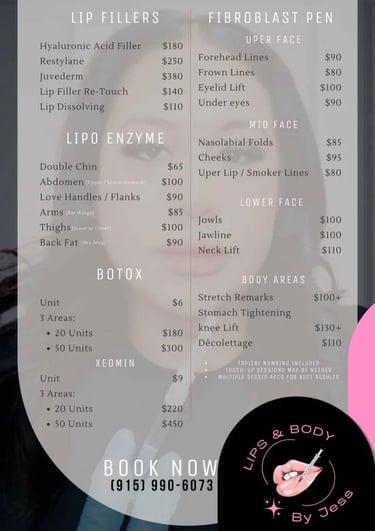 Indulge in a world of refined aesthetics designed to elevate your natural elegance. At Lips & Body By Jess, we believe every treatment should feel as indulgent as it is transformative—delivering timeless results with a touch of luxury.