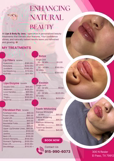 Indulge in a world of refined aesthetics designed to elevate your natural elegance. At Lips & Body By Jess, I believe every treatment should feel as indulgent as it is transformative—delivering timeless results with a touch of luxury.